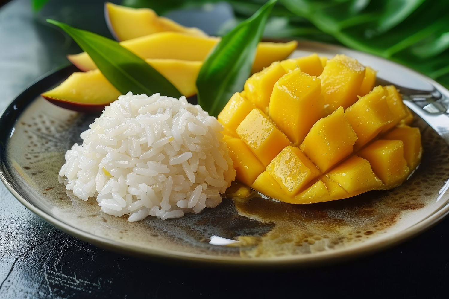Riz gluant noir à la mangue et lait de coco